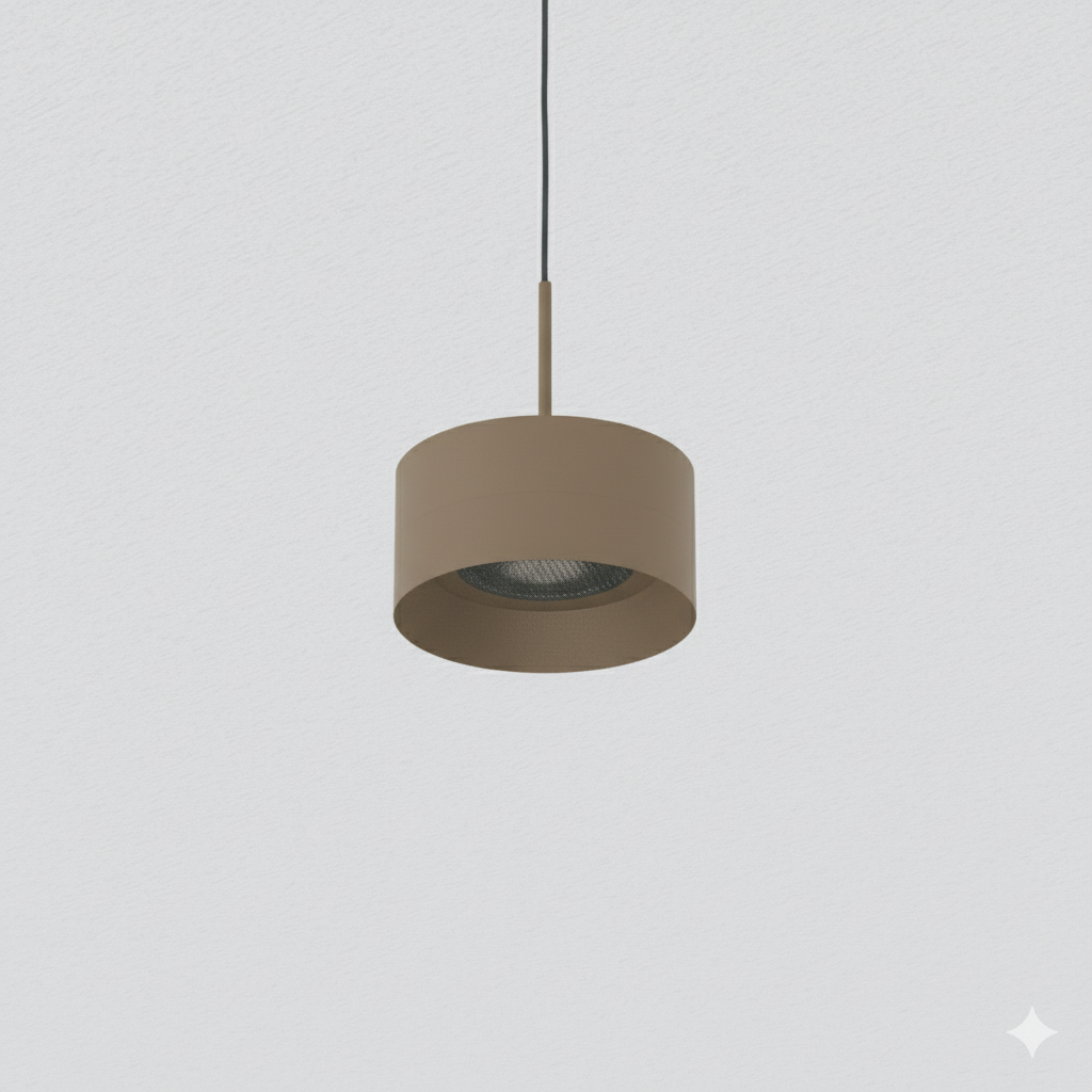 Round pendant direct light mainly made of aluminium. Symmetrical light with HC15°, HC36° of beam angle. COB LUMINUS fully powered by 20,7W offers CRI90 2700K, CRI90 3000K, CRI90 4000K providing 1464Lm, 1579Lm, 1698Lm respectively, with an efficiency of 71Lm/W, 77Lm/W, 83Lm/W respectively. Available in IP20 protection. Dimming options available are ON-OFF, PH-CUT, PUSH ONLY. Options Honeycomb filter, and finishes available in black-textured-matt, white-textured-matt, oliva-textured-matt, mocha-textured-matt, terracota-textured-matt, ocre-textured-matt, dark-bronze, brushed-copper, old-silver, custom-finish, sand-textured-matt, light-bronze, median-bronze, Gun Metal.