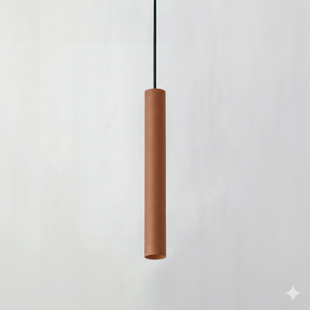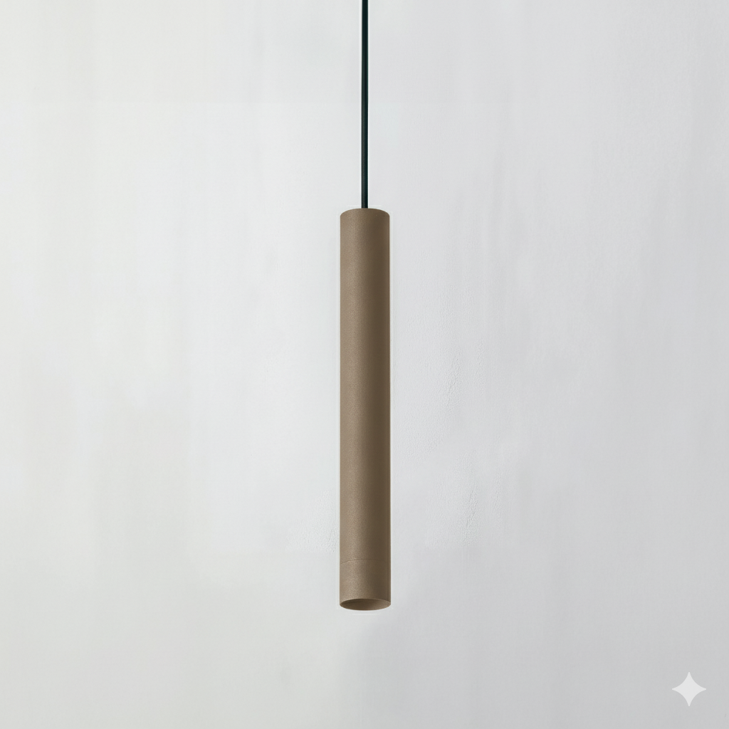 Round pendant direct light mainly made of aluminium. Symmetrical light with 10°, 15°, 24°, 36°, 50° of beam angle. COB LUMINUS fully powered by 8,2W offers CRI95 2700K, CRI95 3000K, CRI95 4000K providing 527Lm, 547Lm, 574Lm respectively, with an efficiency of 65Lm/W, 67Lm/W, 70Lm/W respectively. Available in IP20 protection. Dimming options available are ON-OFF, PH-CUT, PUSH ONLY. Options Honeycomb filter, Transparent glass, and finishes available in black-textured-matt, white-textured-matt, oliva-textured-matt, mocha-textured-matt, terracota-textured-matt, ocre-textured-matt, dark-bronze, brushed-copper, old-silver, custom-finish, sand-textured-matt, light-bronze, median-bronze, Gun Metal.