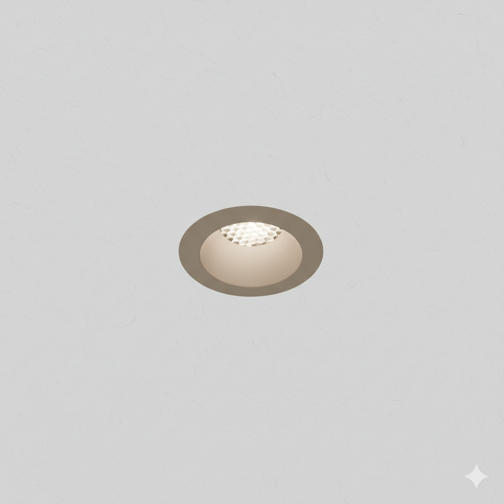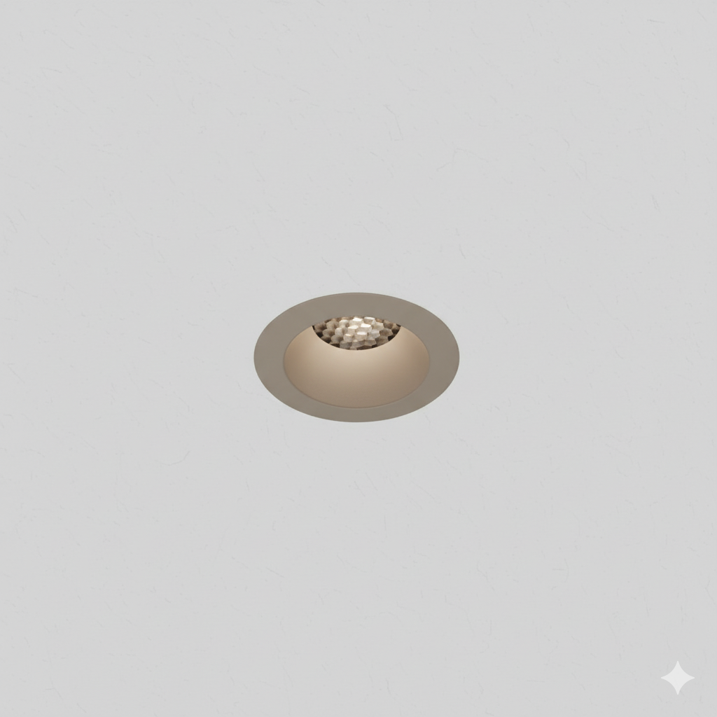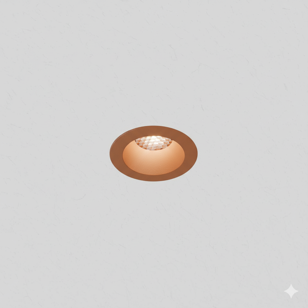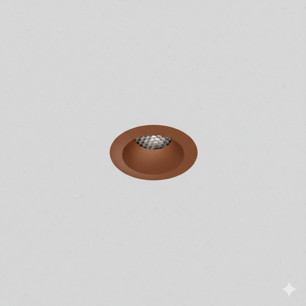 Round recessed direct light mainly made of aluminium. Symmetrical light with HC10°, HC15°, HC24°, HC36°, HC50° of beam angle. COB LUMINUS fully powered by 8,2W offers CRI95 2700K, CRI95 3000K, CRI95 4000K providing 527Lm, 547Lm, 574Lm respectively, with an efficiency of 65Lm/W, 67Lm/W, 70Lm/W respectively. Available in IP20 protection. Dimming options available are ON-OFF, PH-CUT, 1-10V, PUSH ONLY, DALI-2. Options Honeycomb filter, Transparent glass, and finishes available in black-textured-matt, white-textured-matt, oliva-textured-matt, mocha-textured-matt, terracota-textured-matt, ocre-textured-matt, dark-bronze, brushed-copper, old-silver, custom-finish, sand-textured-matt, light-bronze, median-bronze, Gun Metal.