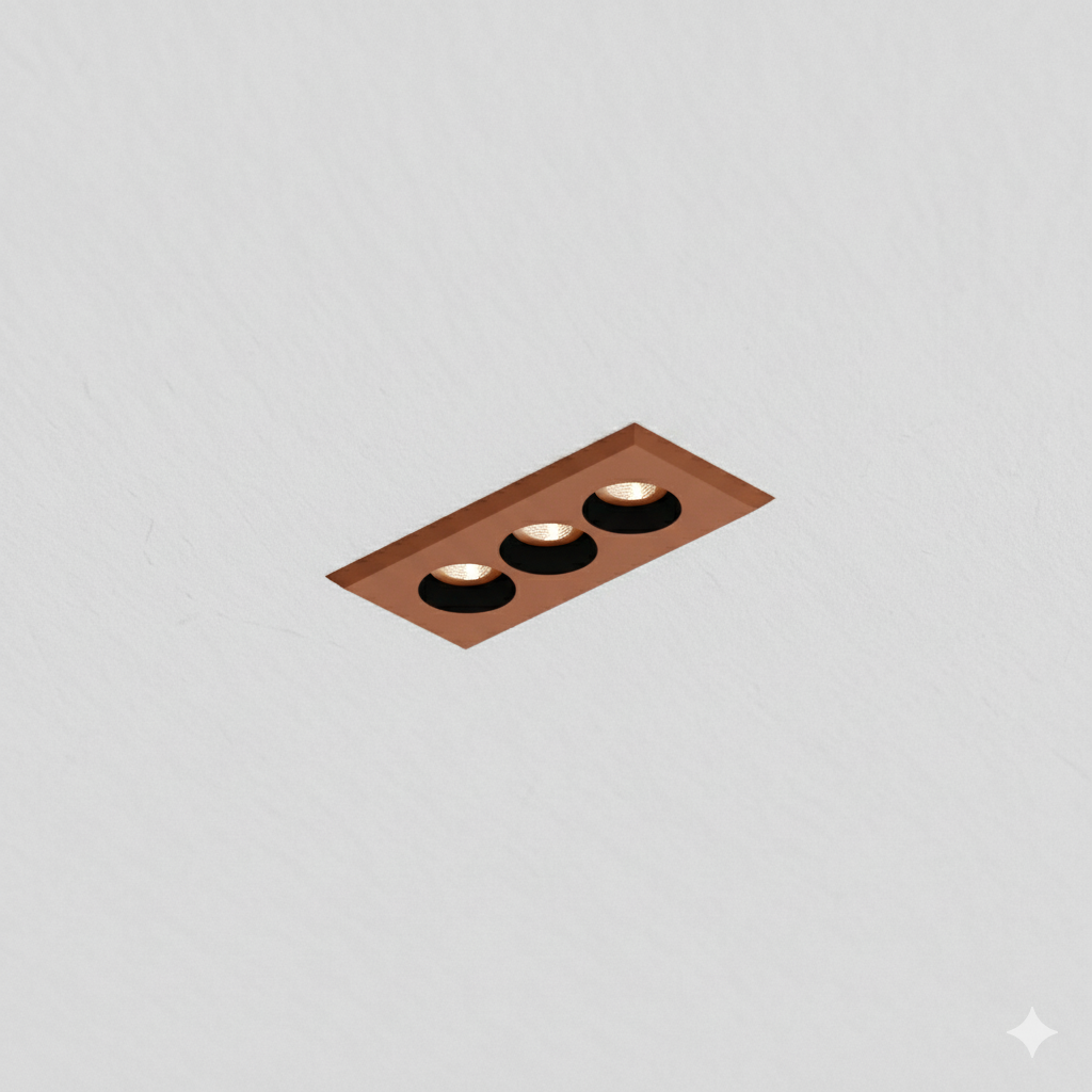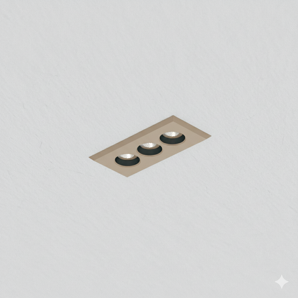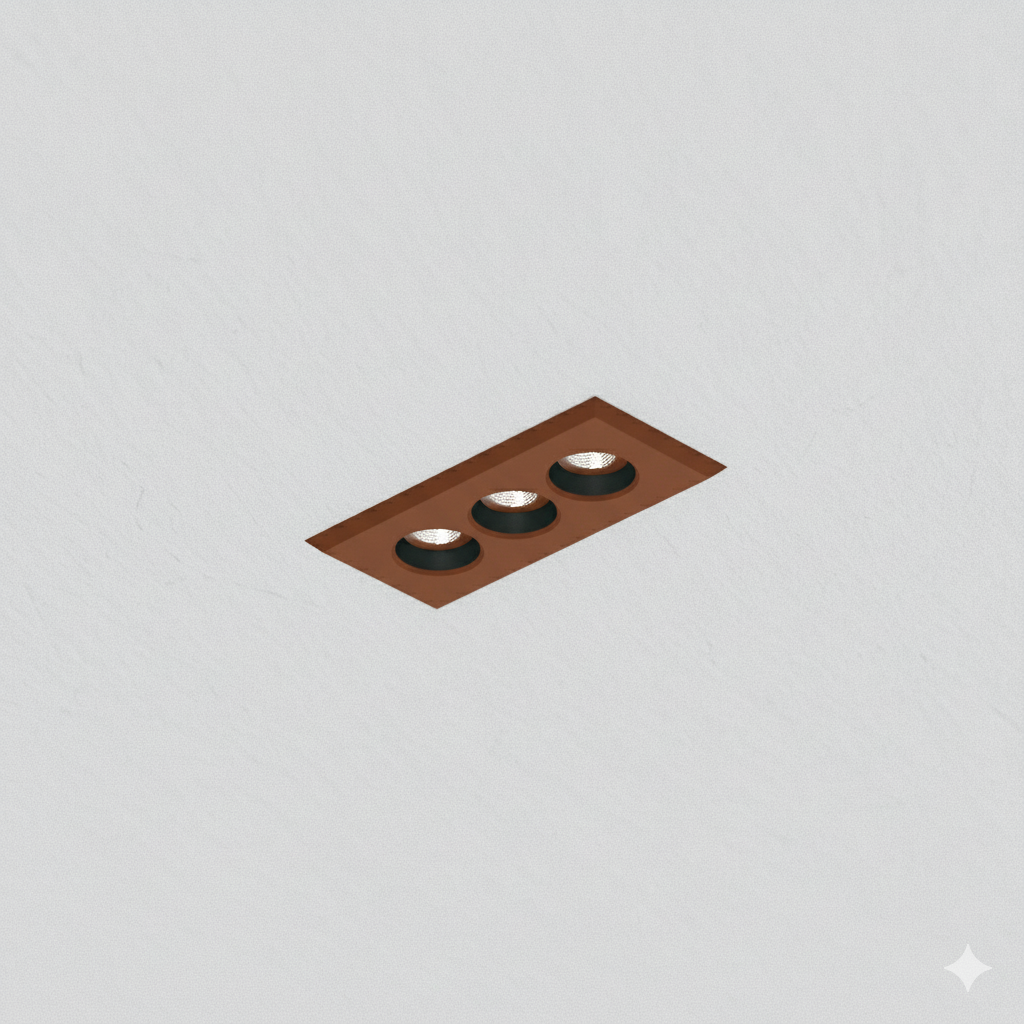 Rectangular recessed direct light mainly made of aluminium. Symmetrical light with 37° of beam angle. MP LED BRIDGELUX fully powered by 5,1W offers CRI90 2700K, CRI90 3000K providing 225Lm, 240Lm respectively, with an efficiency of 45Lm/W, 48Lm/W respectively. Available in IP65 protection. Dimming options available are ON-OFF, PH-CUT, 1-10V, PUSH ONLY, DALI-2. Finishes available in Black Smooth Matt, White Smooth Matt, oliva-textured-matt, mocha-textured-matt, terracota-textured-matt, ocre-textured-matt, dark-bronze, brushed-copper, old-silver, custom-finish, sand-textured-matt, light-bronze, median-bronze, Gun Metal.