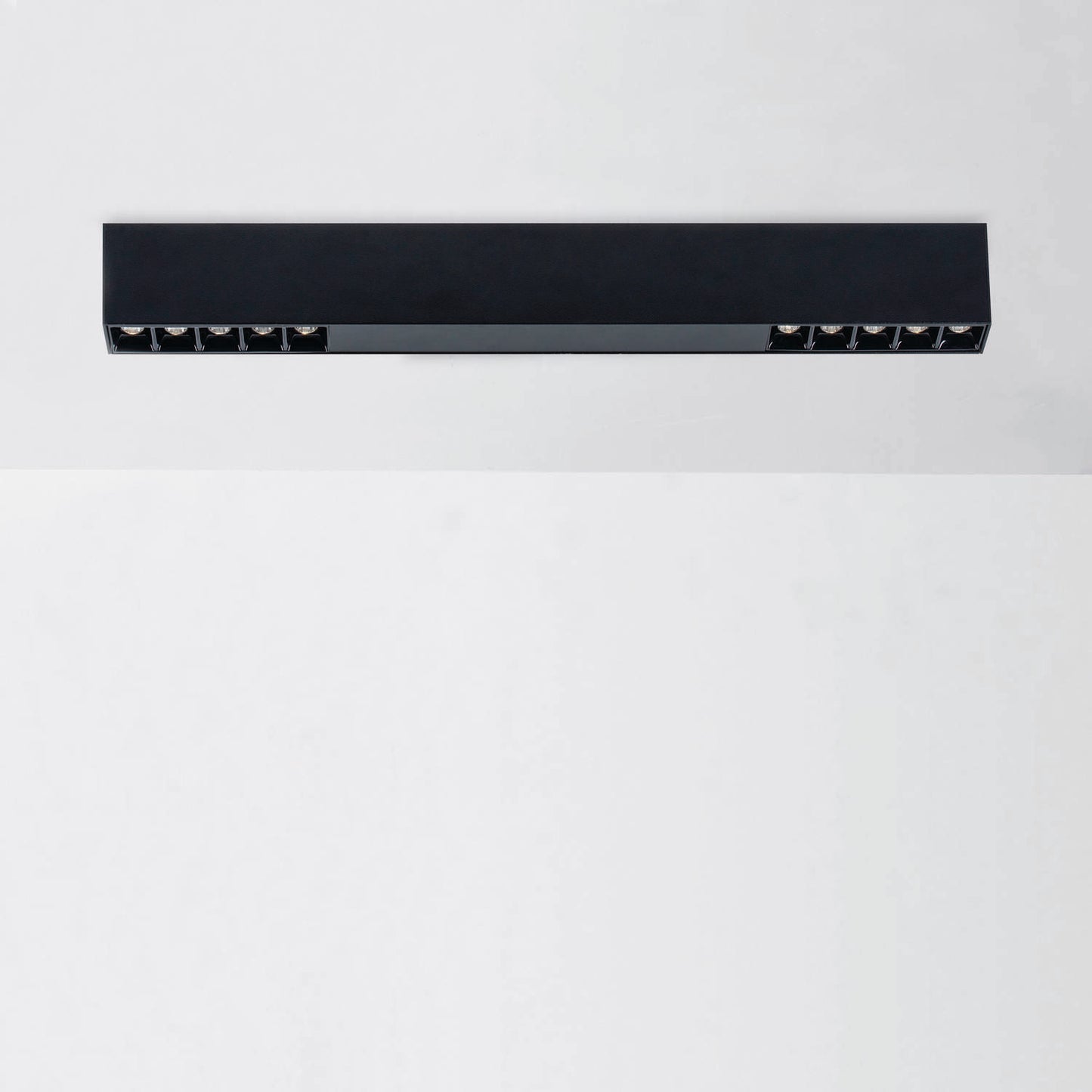 Linear structure direct light mainly made of aluminium. Symmetrical light with 15°, 45° of beam angle. MP LED OSRAM fully powered by 19,3W offers CRI90 2700K, CRI90 3000K providing 1680Lm, 1680Lm respectively, with an efficiency of 88Lm/W, 88Lm/W respectively. Available in IP20 protection. Dimming options available are ON-OFF, 1-10V, PUSH ONLY. Finishes available in Black Textured Satin.