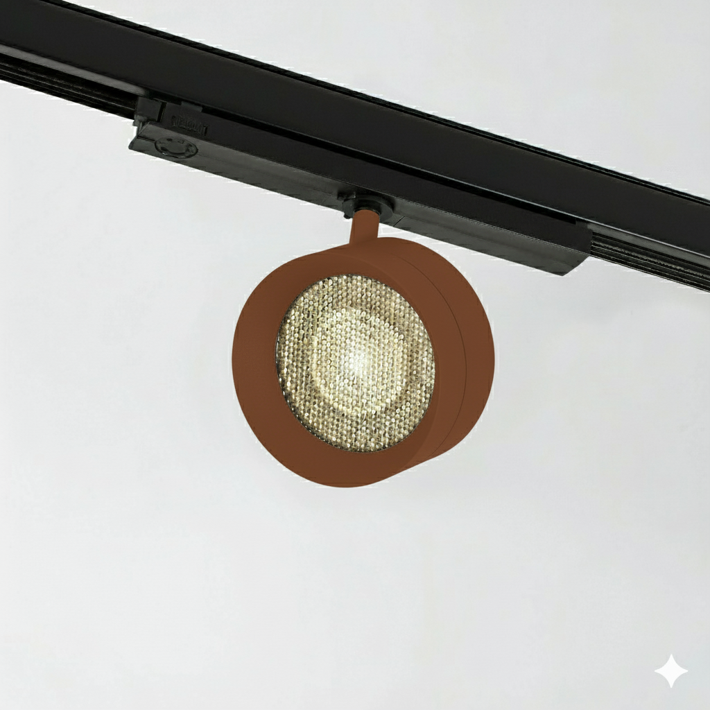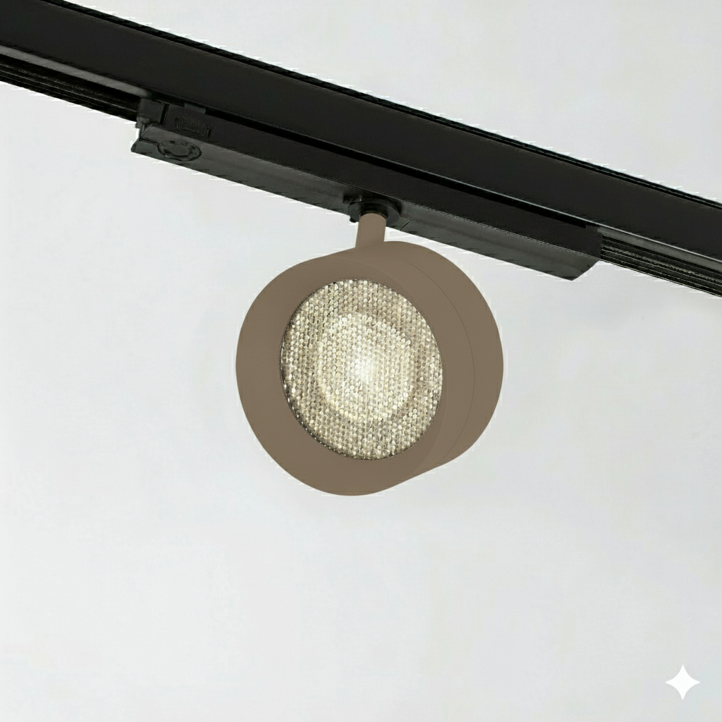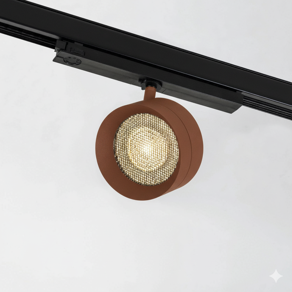 Round tracklight direct light mainly made of aluminium. Symmetrical light with HC15°, HC36° of beam angle. COB LUMINUS powered by 18W offers CRI90 2700K, CRI90 3000K, CRI90 4000K providing 1464Lm, 1579Lm, 1698Lm respectively, with an efficiency of 82Lm/W, 88Lm/W, 95Lm/W respectively. Available in IP20 protection. Dimming options available are ON-OFF, PH-CUT, PUSH ONLY. Options Honeycomb filter, and finishes available in black-textured-matt, white-textured-matt, oliva-textured-matt, mocha-textured-matt, terracota-textured-matt, ocre-textured-matt, dark-bronze, brushed-copper, old-silver, custom-finish, sand-textured-matt, light-bronze, median-bronze, Gun Metal.