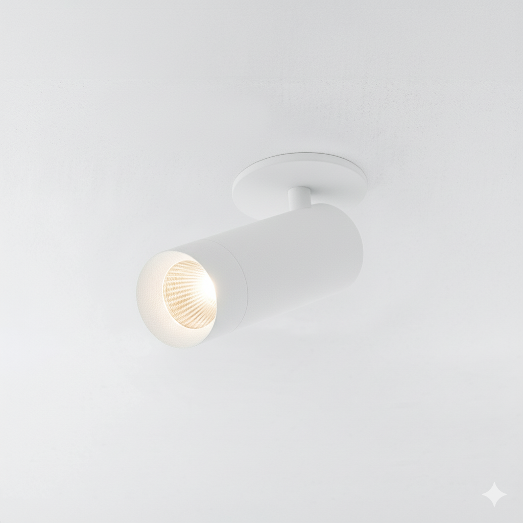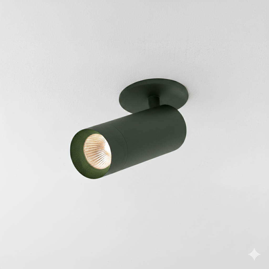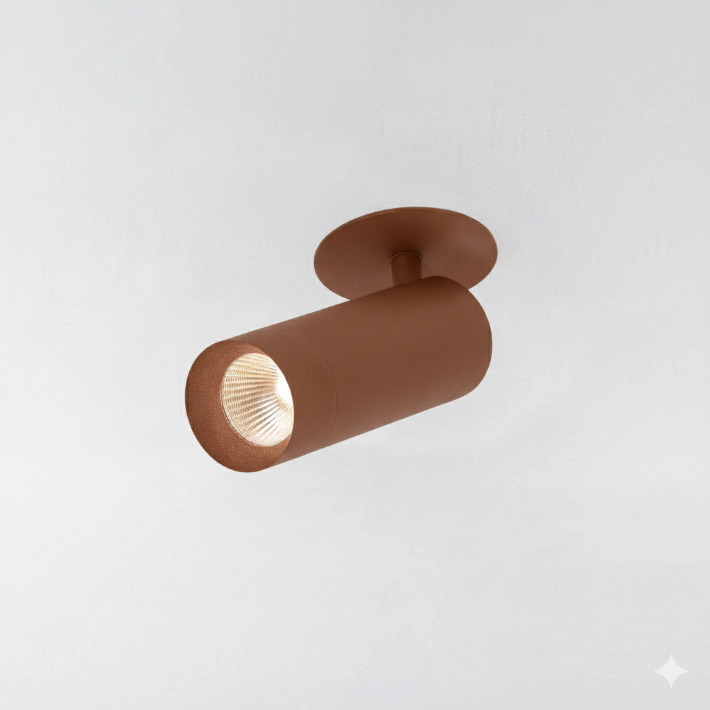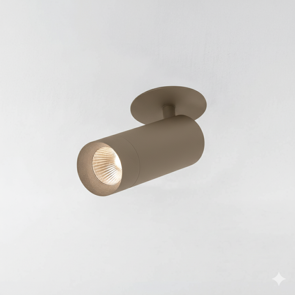 Round recessed direct light mainly made of aluminium. Symmetrical light with 20°,25°,40°,43°,60° of beam angle. COB LUMINUS fully powered by 10,3W offers CRI90 2700K, CRI90 3000K, CRI90 4000K providing 683Lm, 779Lm, 870Lm respectively, with an efficiency of 67Lm/W, 76Lm/W, 85Lm/W respectively. Available in IP20 protection. Dimming options available are ON-OFF, PH-CUT, 1-10V, PUSH ONLY, DALI-2. Options Honeycomb filter, Frosted glass, and finishes available in black-textured-matt, white-textured-matt, oliva-textured-matt, mocha-textured-matt, terracota-textured-matt, ocre-textured-matt, dark-bronze, brushed-copper, old-silver, custom-finish, sand-textured-matt, light-bronze, median-bronze, Gun Metal.