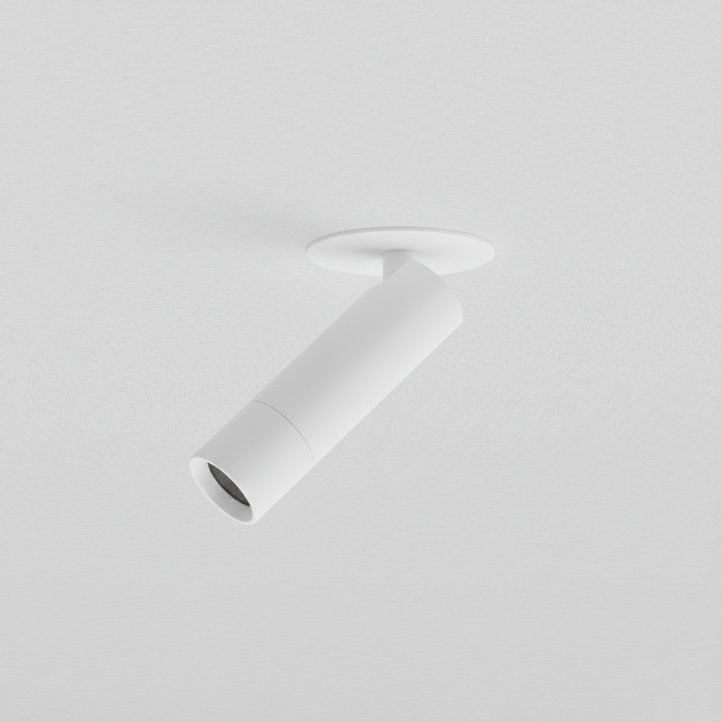 Round recessed direct light mainly made of aluminium. Symmetrical light with 10°, 15°, 24°, 36°, 50° of beam angle. COB LUMINUS fully powered by 7,8W offers CRI95 2700K, CRI95 3000K, CRI95 4000K providing 545Lm, 573Lm, 629Lm respectively, with an efficiency of 70Lm/W, 74Lm/W, 81Lm/W respectively. Available in IP20 protection. Dimming options